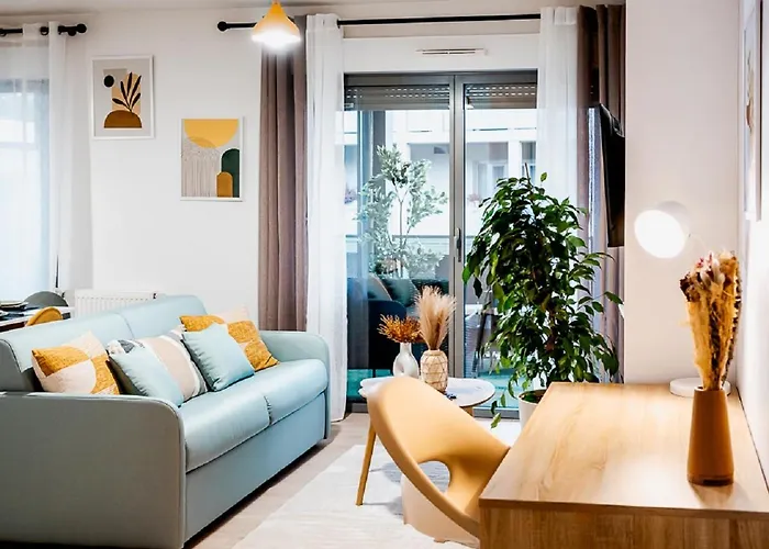 Es gibt eine voll ausgestattete Küchenzeile mit einem Wasserkocher, einem Kühlschrank und einem Herd in der Unterkunft. Die Gäste dieses Apartments können den Komfort von Ausstattung zur Kaffee- & Teezubereitung genießen. Gerichte der französischen Küche werden im Restaurant Leon De Bruxelles serviert, das sich in fußläufiger Entfernung von diesem Apartment befindet. Die nächstgelegene Bushaltestelle Louis de Vion ist in der Entfernung von 350 Metern.